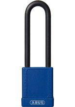 Kłódka aluminiowa z długim jarzmem Abus Safety Lock 74 niebieska (na jeden klucz)