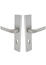 Klamki do drzwi zewnętrznych na długim szyldzie Alubrass Neo (rozstaw 90 , tytan)