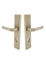 Klamki do drzwi zewnętrznych na długim szyldzie Alubrass Neo (rozstaw 90 , tytan)