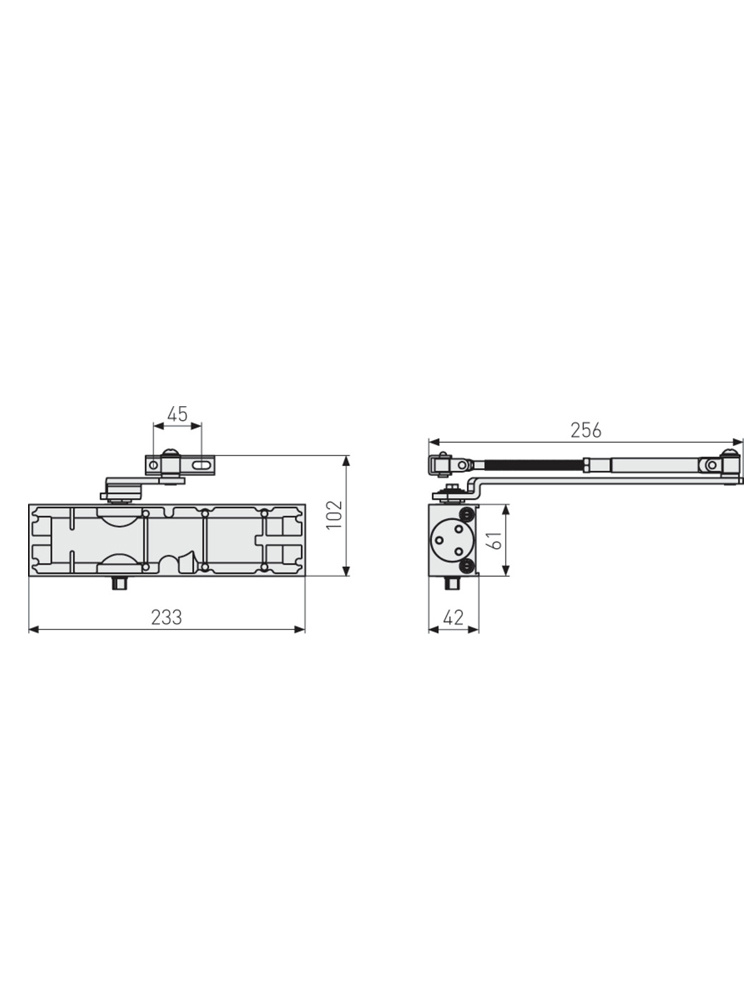Upewnij się, że frontowe drzwi Twojego biura zawsze zamykają się bezpiecznie i cicho. I to niezależnie. Ten samozamykacz nadaje się szczególnie do drzwi recepcyjnych o szerokości do 1,10 metra i maksymalnej wadze 80 kilogramów. Można ustawić indywidualne siły zamykania, a ramię można zablokować. Z opcjonalną płytką DIN samozamykacz nadaje się również do drzwi przeciwpożarowych.