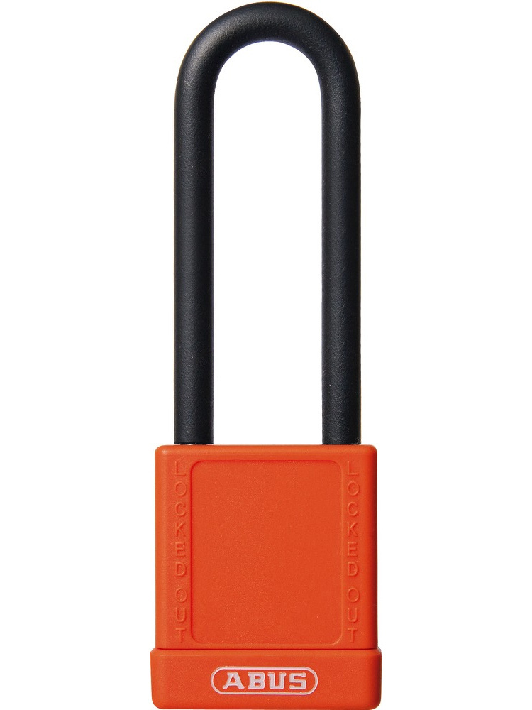 Kłódka aluminiowa z długim jarzmem Abus Safety Lock 74 pomarańczowa- najważniejsze cechy: