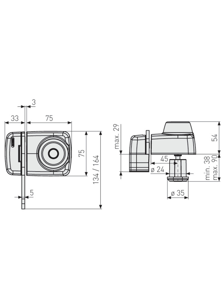 - Przeznaczony do drzwi wejściowych o grubości 38 - 90 mm