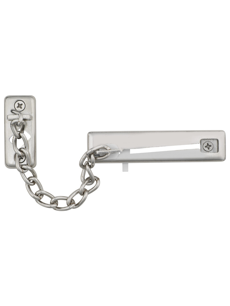 Za pomocą tego łańcucha drzwi możesz bezpiecznie otworzyć drzwi na tyle daleko, aby zobaczyć, co dzieje się za drzwiami domu lub mieszkania. W ten sposób możesz powstrzymać nieproszonych gości. Sprężynowa prowadnica utrzymuje ręce dzieci z dala od łańcucha, który jest wykonany ze spawanej stali