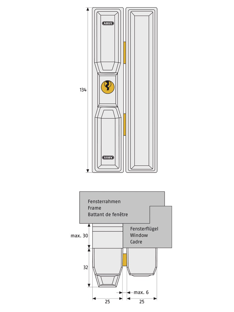 - Zamykanie i otwieranie okna przy pomocy klucza. Możliwość ujednolicenia na ten sam klucz z innymi produktami ABUS.