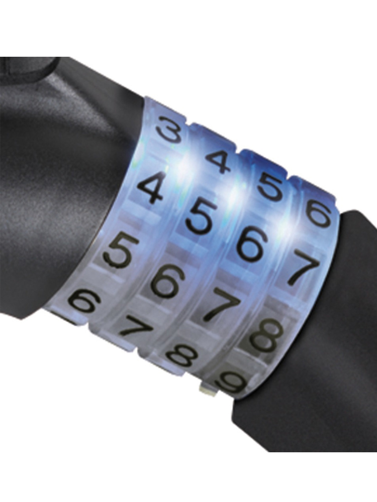 bezpieczeństwo w jednym, idealnym połączeniu. Istotną funkcją ABUS Press'n Shine, która pozwala na odblokowanie linki nawet w ciemności. Dzięki podświetleniu LED cylindra numerycznego zawsze można rozpoznać cyfry na zamku szyfrowym i wygodnie otworzyć zapięcie. Czterocyfrowy kod zamka można ustawić indywidualnie i wybrać łatwą do zapamiętania kombinację cyfr.