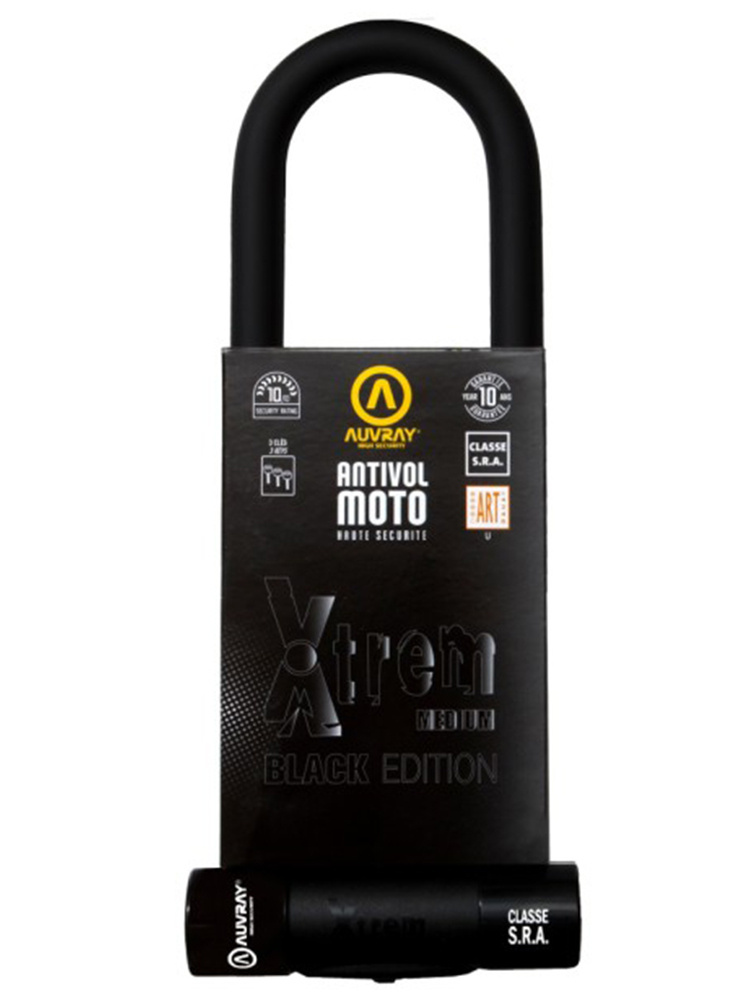 Specyfikacja techniczna: U-Lock Auvray Xtrem Medium Black Edition 85 x 310 mm (klasa S.R.A.):