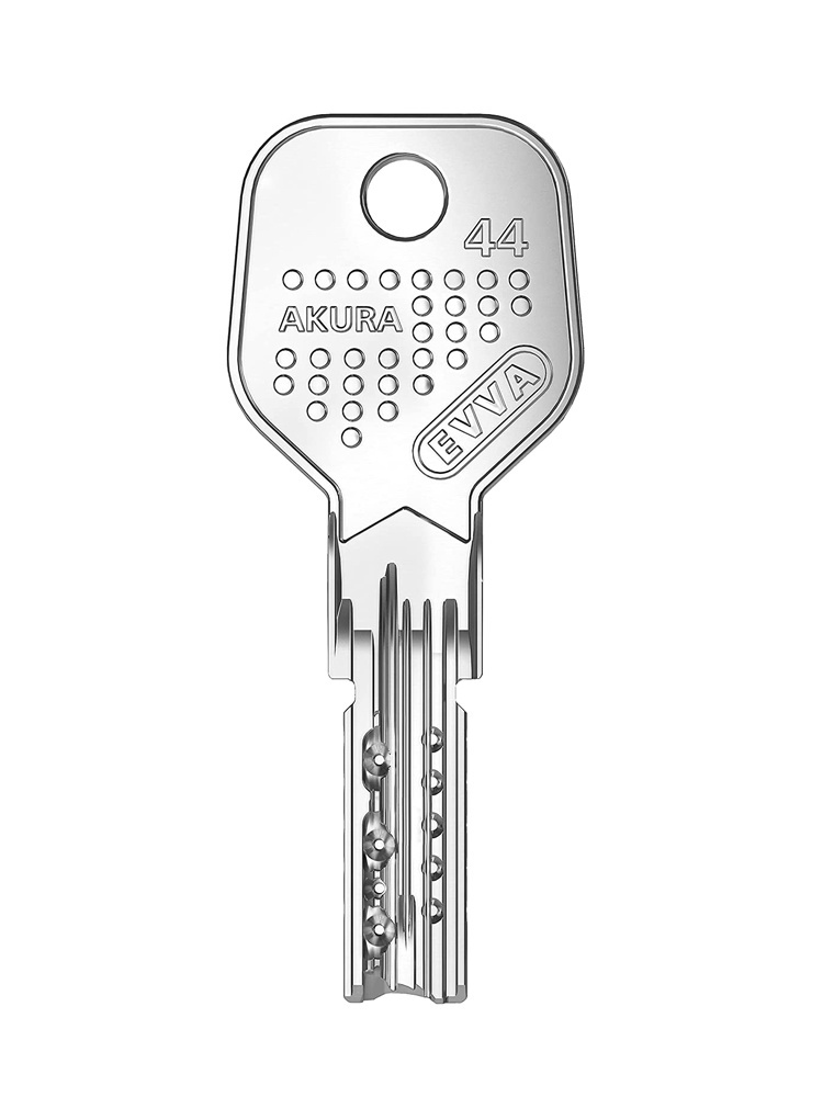 Evva Akura 44 to rodzaj wkładki do drzwi o wysokim poziomie bezpieczeństwa, wyprodukowana przez austriacką firmę EVVA. Posiada opatentowany system, który zapewnia lepszą ochronę przed wyrywaniem, wierceniem i innymi formami włamania. Zamek Akura 44 jest również odporny na manipulacje i dorabianie kluczy przez osoby niepowołane. Wykorzystuje odwracalny klucz, który można włożyć do zamka w dowolnej orientacji, co ułatwia użytkowanie i zmniejsza ryzyko złamania klucza. Dzięki EVVA Akura 44 znajdziesz innowacyjny i elastyczny system odwracalnego klucza, w którym szczególną uwagę zwrócono na wymogi bezpieczeństwa dla budynków mieszkalnych. Szeroka gama wkładek sprawia, że Akura 44 idealnie nadaje się do dobrze zorganizowanych systemów klucza głównego. Dzięki modułowej konstrukcji wkładki można ją łatwo dopasować do odpowiedniej szerokości drzwi, co zapewnia bezpieczeństwo planowania i inwestycji.
