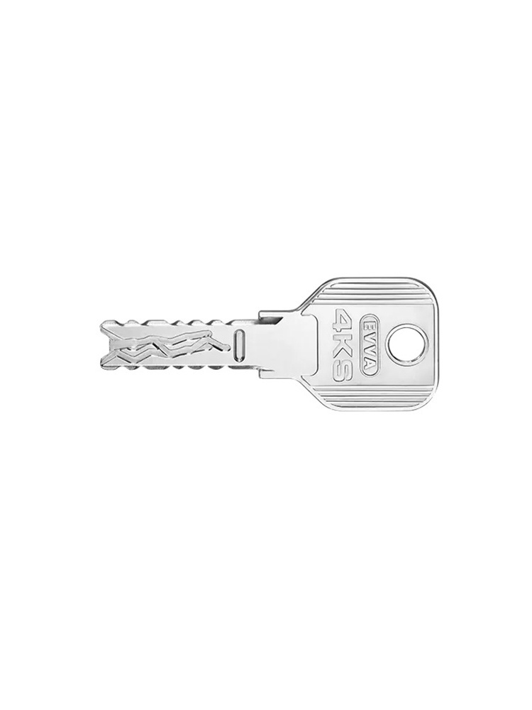 Klucze 4KS są dwustronne i mają grubość 2,2 mm. Klucz można szczególnie łatwo przymocować dzięki dwóm zaokrąglonym końcówkom. Dzięki zasadzie bez sprężyny klucz wsuwa się delikatnie i prawie bezgłośnie do cylindra. W celu ochrony przed kopiowaniem i manipulacją kluczami system posiada 3 różne zabezpieczenia: