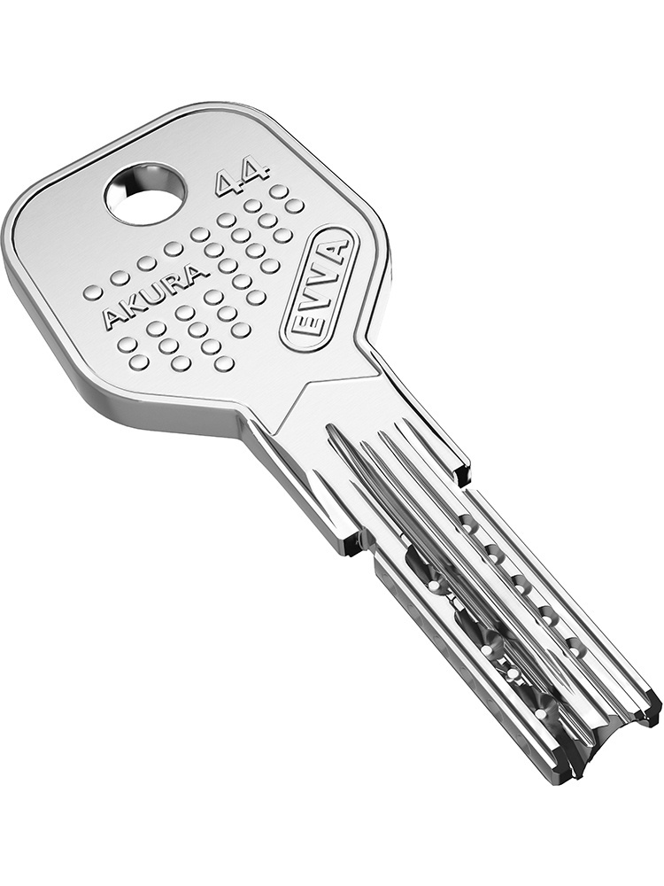 Evva Akura 44 to rodzaj wkładki do drzwi o wysokim poziomie bezpieczeństwa, wyprodukowana przez austriacką firmę EVVA. Posiada opatentowany system kołków, który zapewnia lepszą ochronę przed wyrywaniem, wierceniem i innymi formami włamania. Zamek Akura 44 jest również odporny na manipulacje i dorabianie kluczy przez osoby niepowołane. Wykorzystuje odwracalny klucz, który można włożyć do zamka w dowolnej orientacji, co ułatwia użytkowanie i zmniejsza ryzyko złamania klucza. Dzięki EVVA Akura 44 znajdziesz innowacyjny i elastyczny system odwracalnego klucza, w którym szczególną uwagę zwrócono na wymogi bezpieczeństwa dla budynków mieszkalnych. Szeroka gama wkładek sprawia, że Akura 44 idealnie nadaje się do dobrze zorganizowanych systemów klucza głównego. Dzięki modułowej konstrukcji wkładki można ją łatwo dopasować do odpowiedniej szerokości drzwi, co zapewnia bezpieczeństwo planowania i inwestycji.