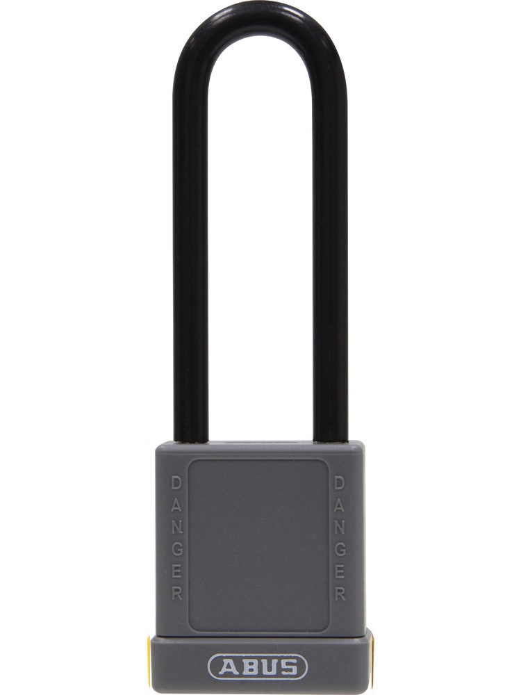 Kłódka aluminiowa z długim jarzmem Abus Safety Lock 74 szara- najważniejsze cechy: