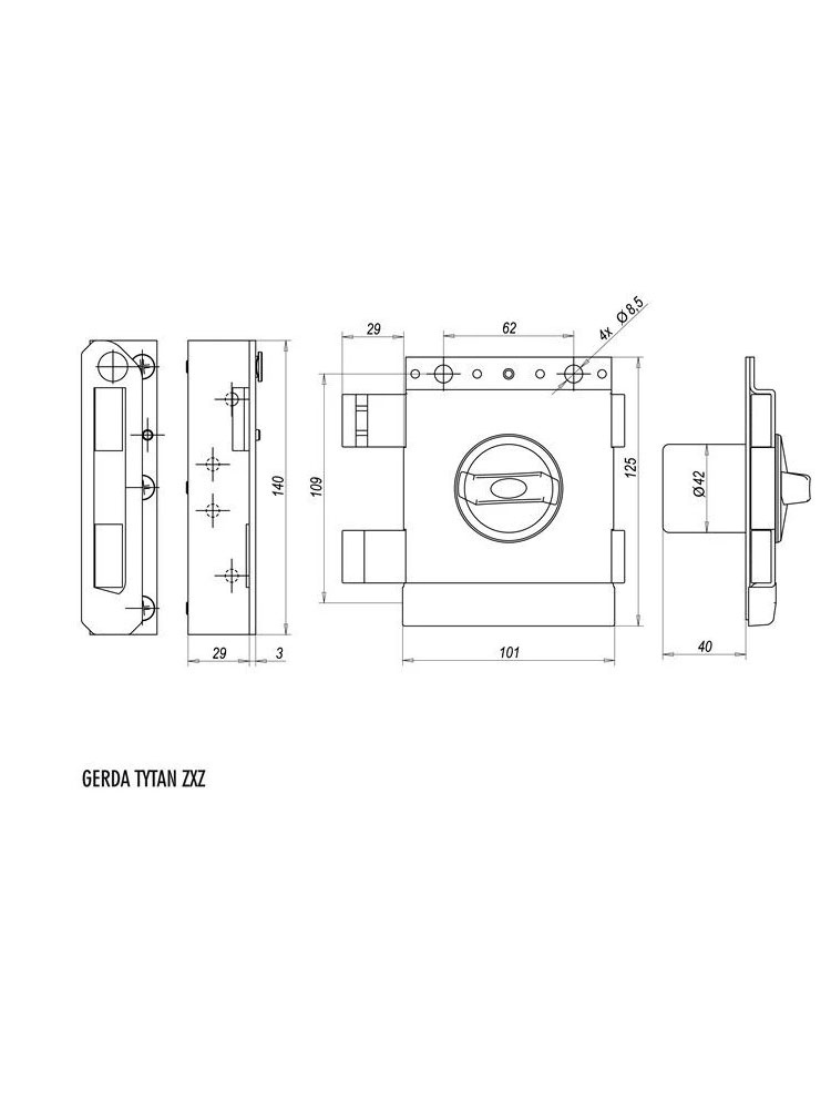 Zamek nawierzchniowy GERDA TYTAN ZXZ Lewy pasuje do drzwi otwieranych do wewnątrz, które posiadają zawiasy z lewej strony (patrząc od strony mieszkania)