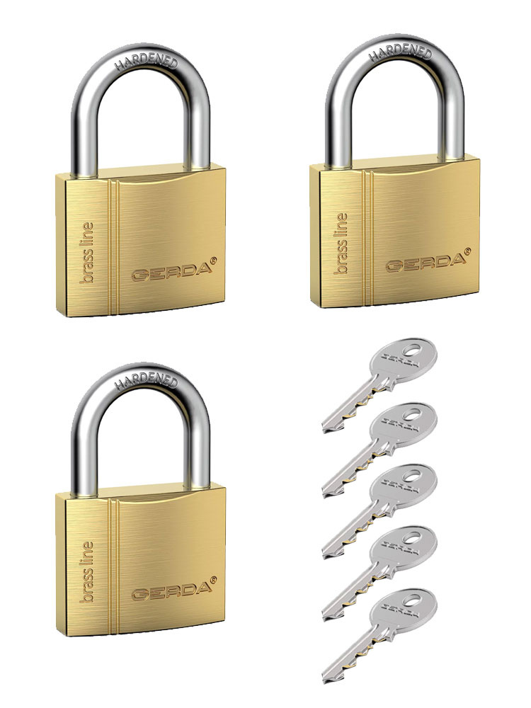 Zestaw 3 kłódek mosiężnych na 1 klucz Gerda BRASS LINE KMZ S30 (30 mm)