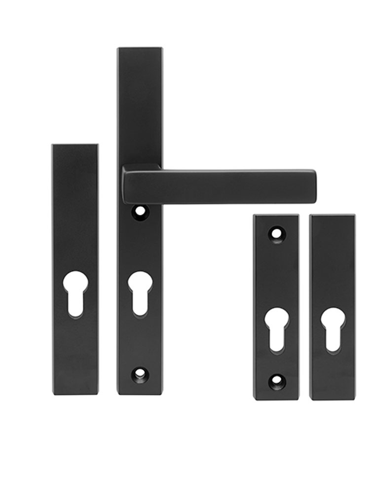 Zestaw do antab klamki + rozety do drzwi zewnętrznych Alubrass Theo SLIM (rozstaw 92, czarny F8):