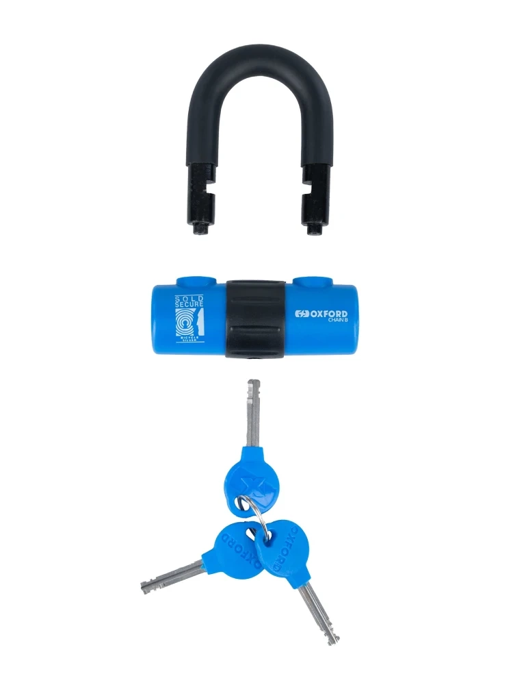 - Łańcuch do motocykla Oxford Chain 8 z kłódką został wykonany z utwardzanych ogniw kwadratowych o średnicy 8 [mm]